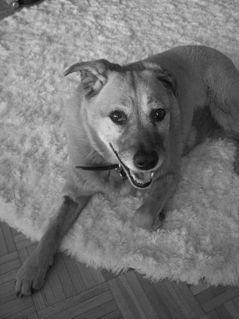 Oh, but Brooke, you're so damn cute! This past week our precious little ringbearer (ringdoger? She's certainly not a bear...) got the idea to pee on the living room floor while we were asleep and we didn't catch it until later in the morning. This has resulted in some unfortunate buckling of our high-quality parquet flooring. That we do not own. That we're sure the apartment complex people will be none too happy is damaged. And this buckling is not minor, feel-it-give-a-little-under-your-feet buckling, it's full-fledged trip-you-and-cause-you-to-take-a-header-into-the-coffee-table buckling. It feels lethal. And expensive. Not a great combination.